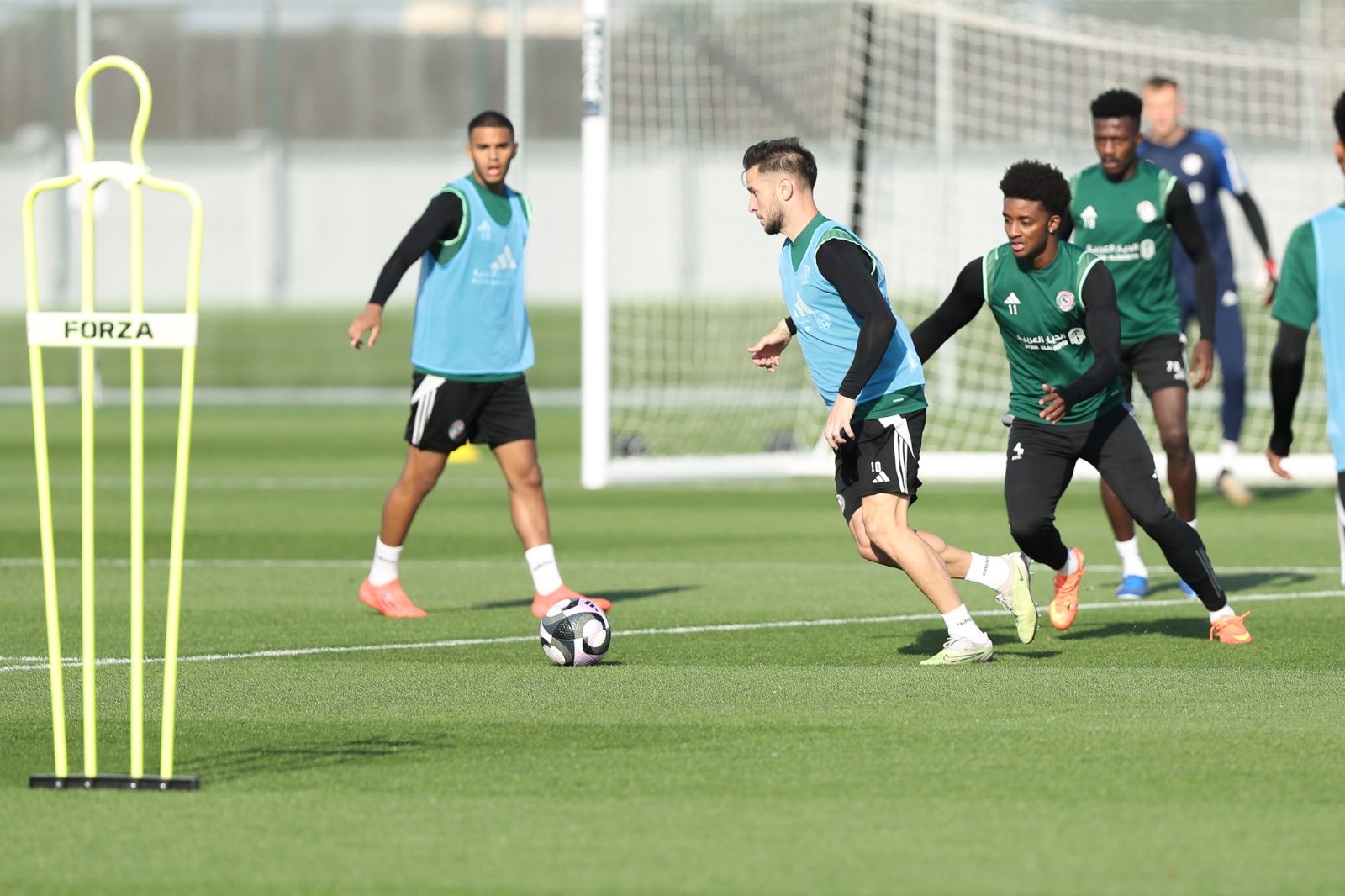 وخاض الفريق اليوم السبت، تمرينه على الملعب الرديف والذي بدأ بالاحماء بالكرة، ثم بتمرين استحواذ، ثم تمرين جمل هجومية تكتيكية، واختتم بمناورة لتطبيق الجمل التكتيكية.