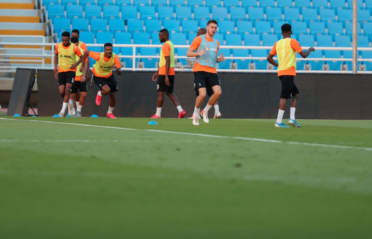 وكان التدريب الذي قاده المدرب الوطني خالد العطوي قد ابتدأ بإحماء لاعبي الفريق وتمديد العضلات مع المعد البدني، ثم أجرى لاعبو الفريق تدريب الاستحواذ عبر مجموعتين، في ذات الوقت خاض حارسي المرمى تدريبات خاصة مع مدرب الحراس الوطني حمد اليامي، بعد ذلك قسم العطوي لاعبي الفريق إلى مجموعتين حيث طبقت المجموعة الأولى عدداً من الجمل التكتيكية فيما أجرت المجموعة الثانية مناورة من لمستين على ثلث الملعب، واختتم التدريب بتنفيذ عدد من اللاعبين تدريب الكرات الثابتة والمتحركة على حراس المرمى.